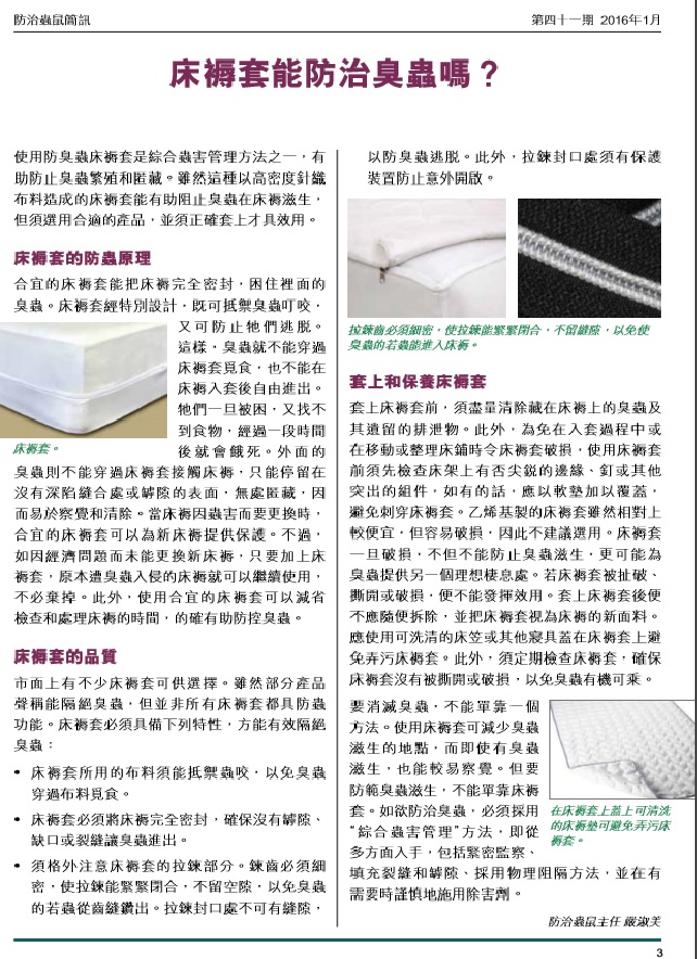 防治蟲鼠簡訊 - 第四十一期2016年1月 木蝨又稱床蝨/臭蟲