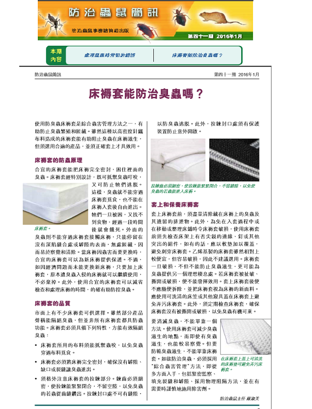 2016 政府撰文 - 床褥套能治臭蟲嗎?